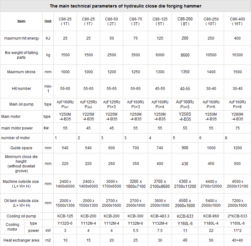 Hydraulic forging hammer is a new energy saving and environmental protection forging hammer.It can save more than 90% energy comparing with the steam forging hammer and the forging hammer with compressor. Also,it can improve the working condition.